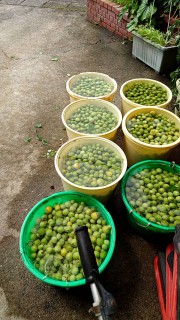 2021年5月26・27日の2日間で今年の梅の収穫を致しました。昨年は55㌔の収穫でしたが今年は62㌔の収穫でした。昨年よりは少し小ぶりでは有りましたが良い収穫になりました。出来上がりが楽しみです。
